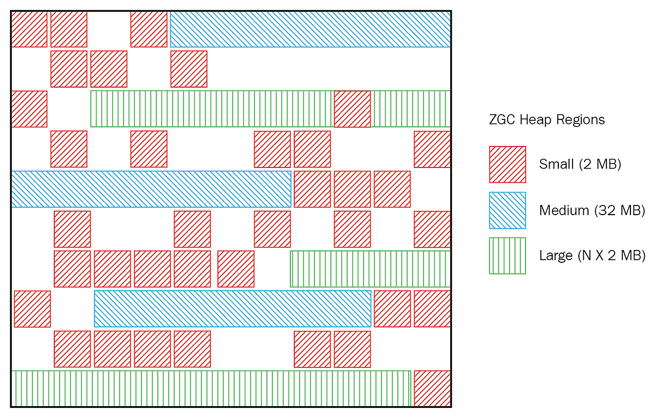 ZGC 힙 영역은 ZPages라는 영역으로 나눈다. ZPages는 동적으로 생성되고 파괴되며, 2MB의 배수의 크기를 가진다. 또한 다른 GC와 달리 실제 힙 영역보다 더 큰 주소 공간을 매핑할 수 있다. 따라서 메모리 단편화 문제를 해결하기 위해 compaction을 실행해야 하는 다른 GC와 달리, ZGC에서는 문제가 되지 않는다.