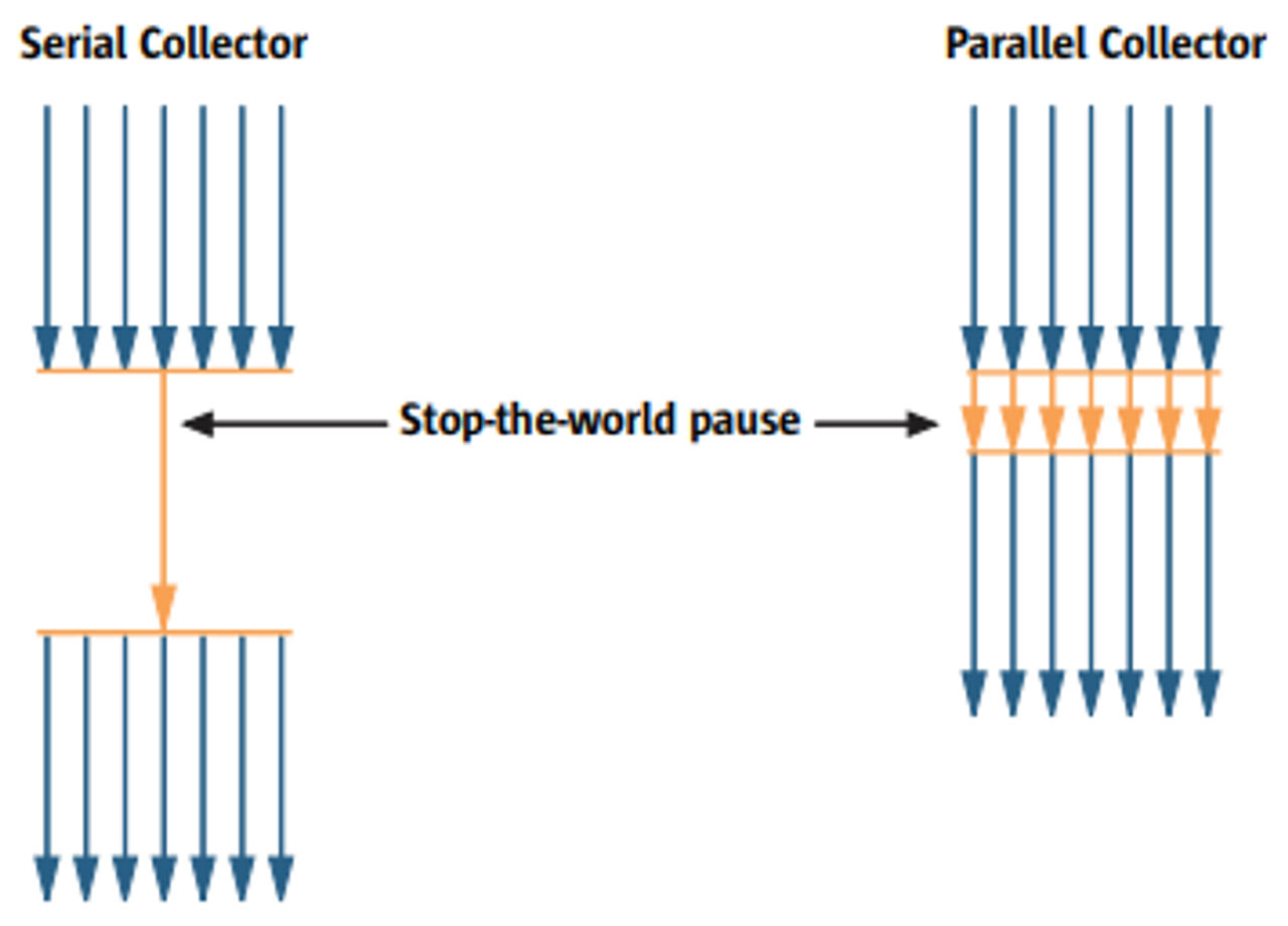 Young Generation에서 Serial GC 과정을 한 개의 스레드가 아닌 여러 스레드를 통해 진행한다. 자연스럽게 STW 시간이 Serial GC와 비교해 짧아진다. 실행환경의 메모리가 충분하고 CPU 코어가 많을 때 유리하다. Old Generation에서는 Serial GC와 동일하게 동작한다.